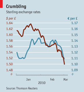 Подобные опасения могут быть преувеличены, ведь какая бы партия (или партии) не пришла к власти, ей будет необходимо иметь дело с дефицитом и учитывать реакцию рынка. Кроме того, фунт не самый очевидный кандидат для валютного кризиса, главным образом потому, что он и так испытал его, упав на 30% к торгово-взвешенной корзине валют в период между серединой 2007 и концом 2008 года, затем немного повысился и стабилизировался. Однако под опасениями инвесторов лежит реальная основа, и теперь непредсказуемая обратная реакция сама по себе может начать влиять на исход выборов.